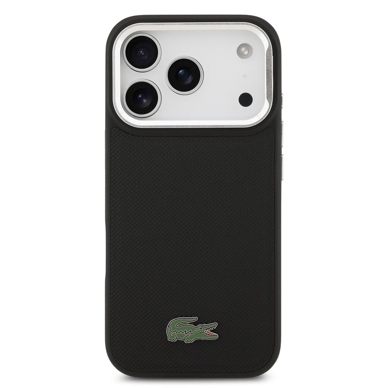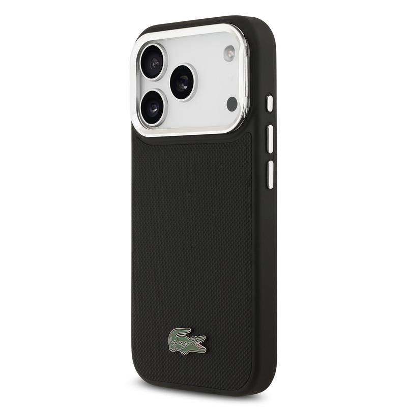 Custodia con supporto per fotocamera Lacoste Iconic Petit Pique per iPhone 17 Pro - Compatibile con MagSafe, rivestimento in microfibra e logo in metallo