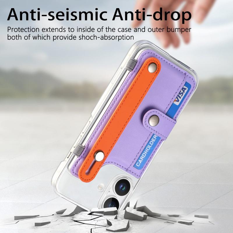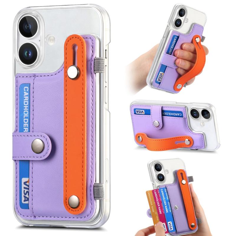 Custodia in plastica CY1 con slot per carte, cinturino da polso e supporto per iPhone 16