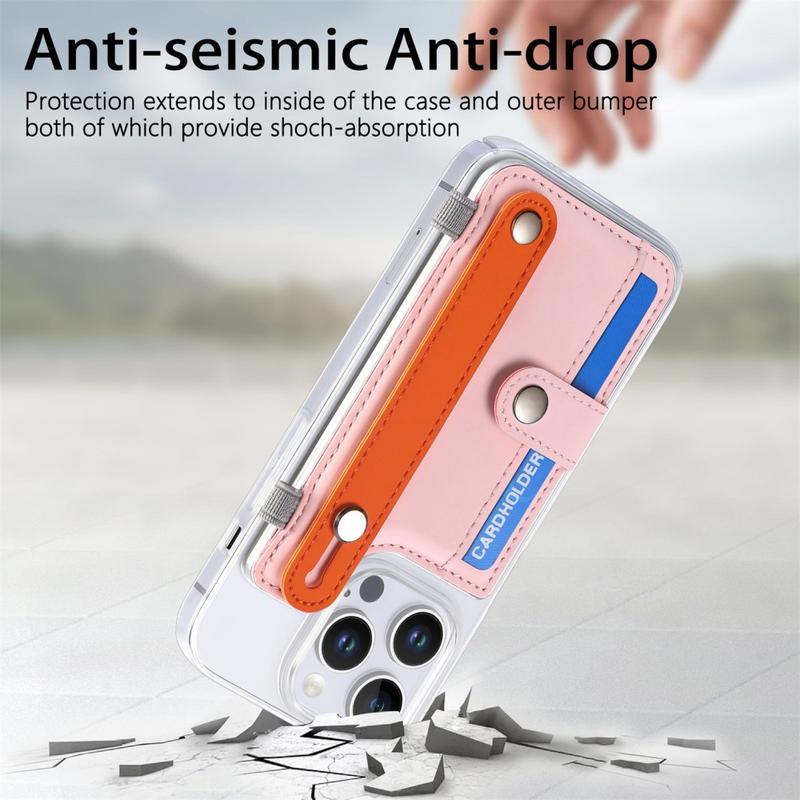 Custodia in plastica CY1 con slot per carte, cinturino da polso e supporto per iPhone 16 Pro