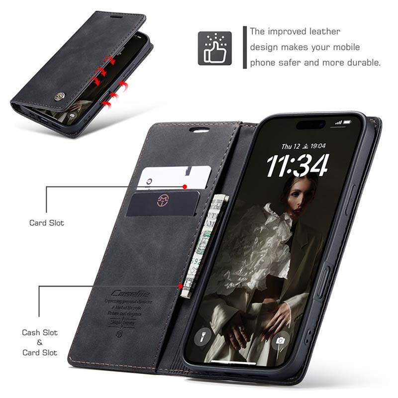 - Custodia a portafoglio serie Caseme 013 per il tuo prezioso iPhone 16 Plus