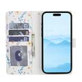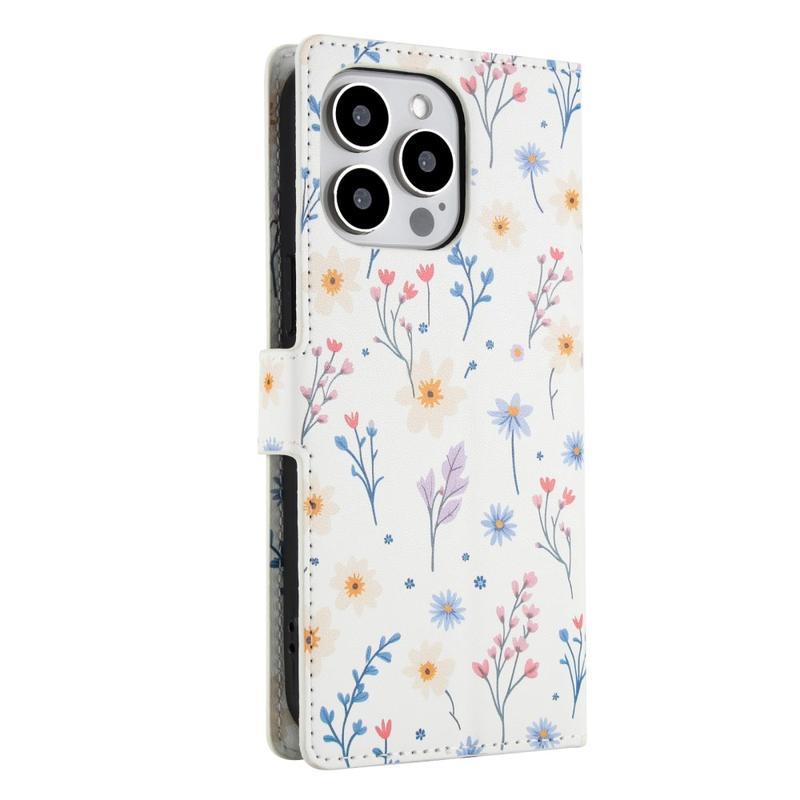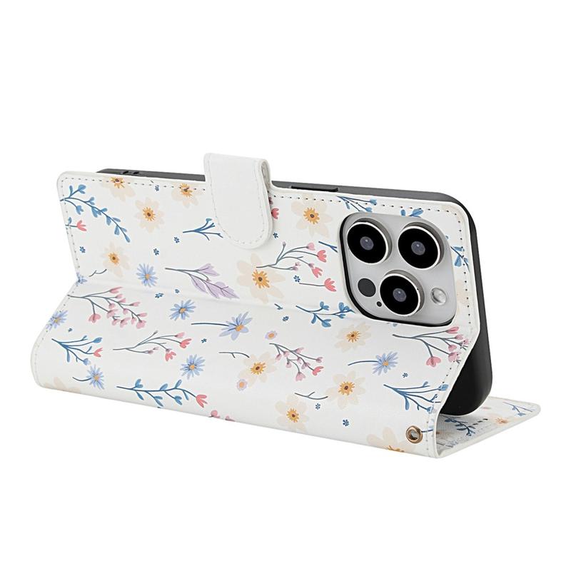 Custodia a portafoglio floreale a rombi per iPhone 16 Pro - con cinturino e scomparti per carte di credito