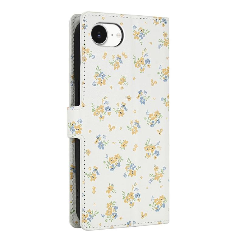 Custodia a portafoglio floreale a rombi per iPhone 16e - con cinturino e scomparti per carte di credito