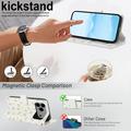 - Combina portafoglio, supporto e cinturino in un unico accessorio, riducendo il disordine