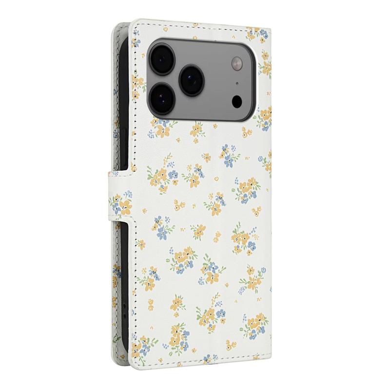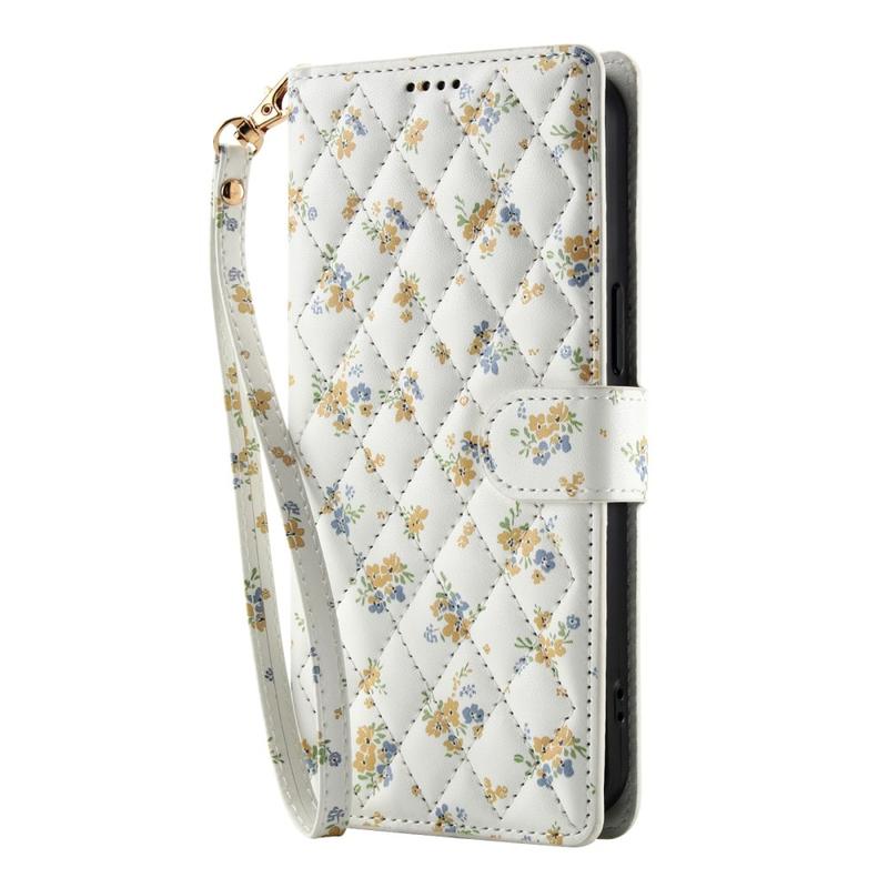 Custodia a portafoglio floreale a rombi per iPhone 17 Pro - con cinturino e scomparti per carte di credito