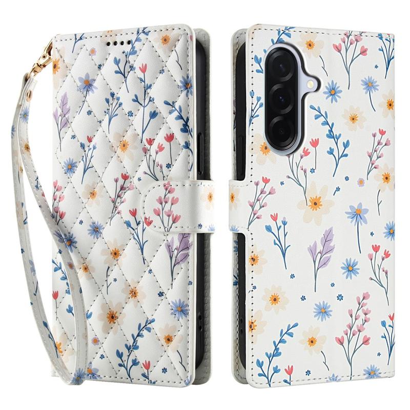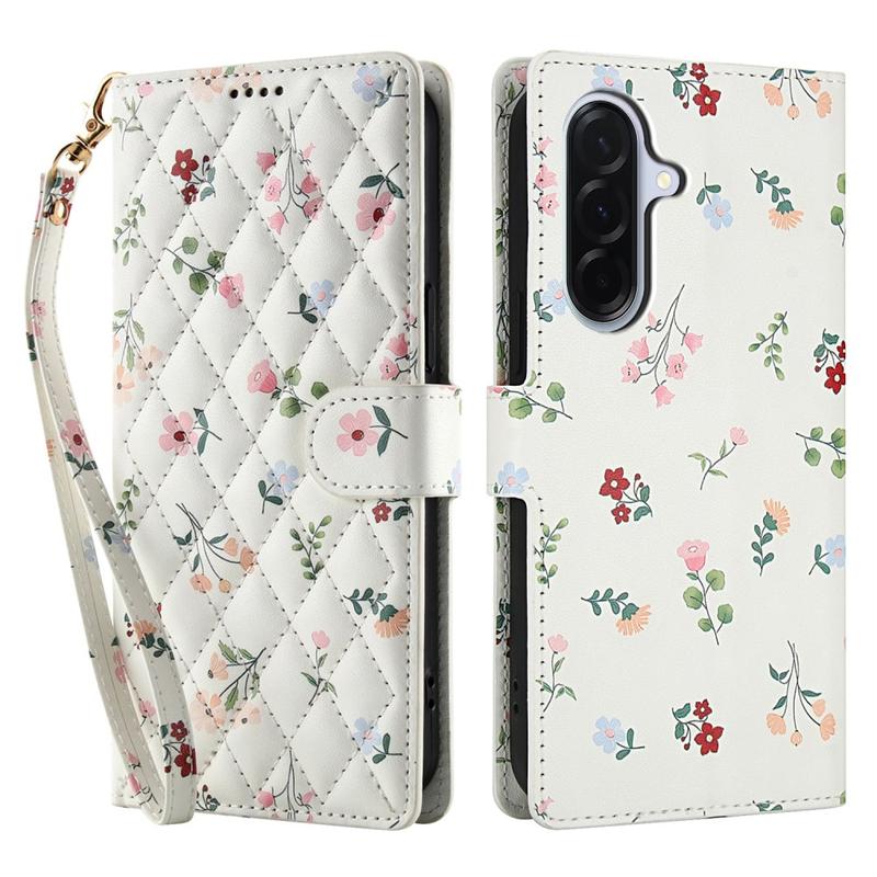 Custodia a portafoglio floreale a rombi per Samsung Galaxy A57 - con cinturino e scomparti per carte di credito