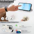 - Combina portafoglio, supporto e cinturino in un unico accessorio, riducendo il disordine
