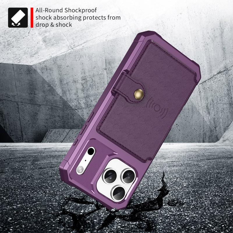 - La custodia a portafoglio per iPhone 17 Pro ha una chiusura sicura con bottone a pressione, un design a portafoglio e diversi scomparti per carte di credito con una tasca per contanti