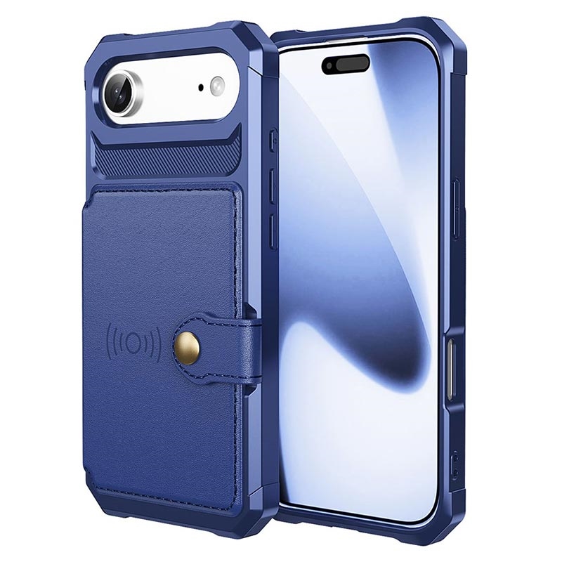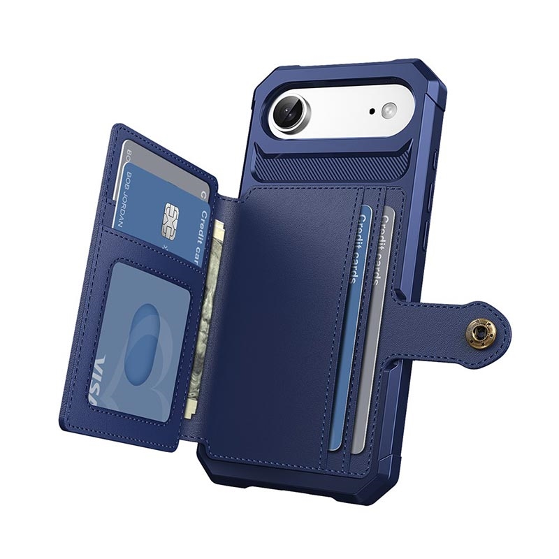 - La custodia a portafoglio per iPhone Air ha una chiusura sicura con bottone a pressione, un design a portafoglio e diversi scomparti per carte di credito con una tasca per contanti