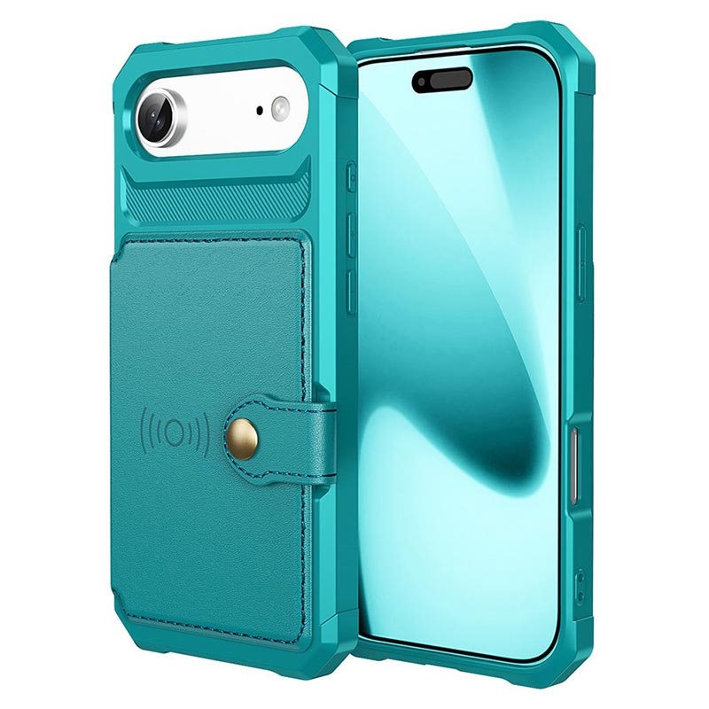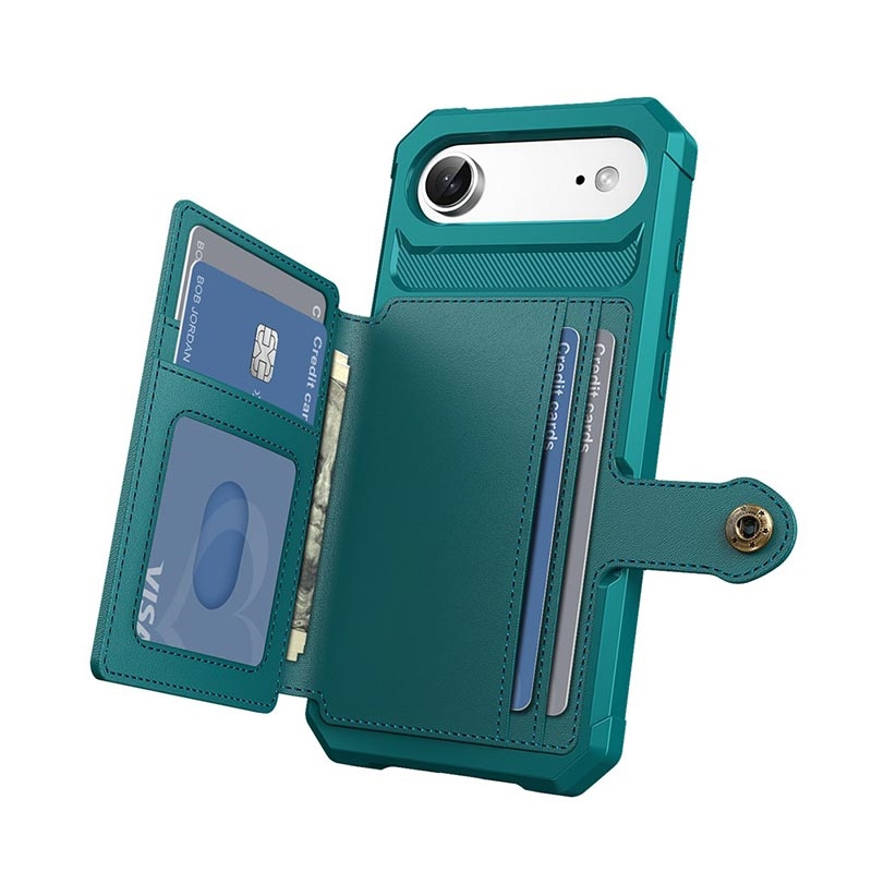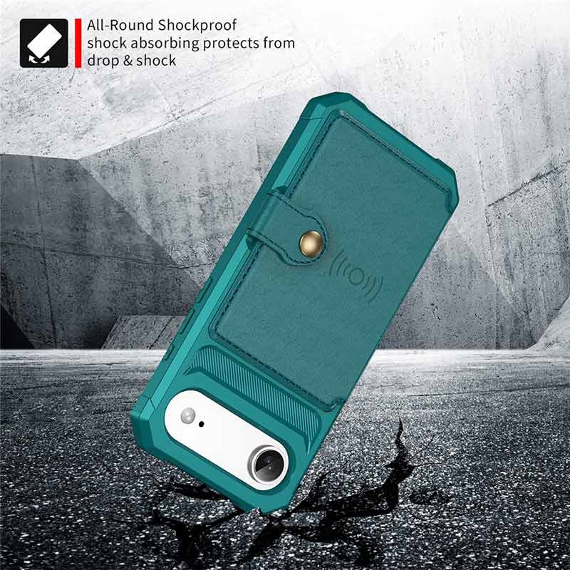 - La custodia a portafoglio per iPhone Air ha una chiusura sicura con bottone a pressione, un design a portafoglio e diversi scomparti per carte di credito con una tasca per contanti