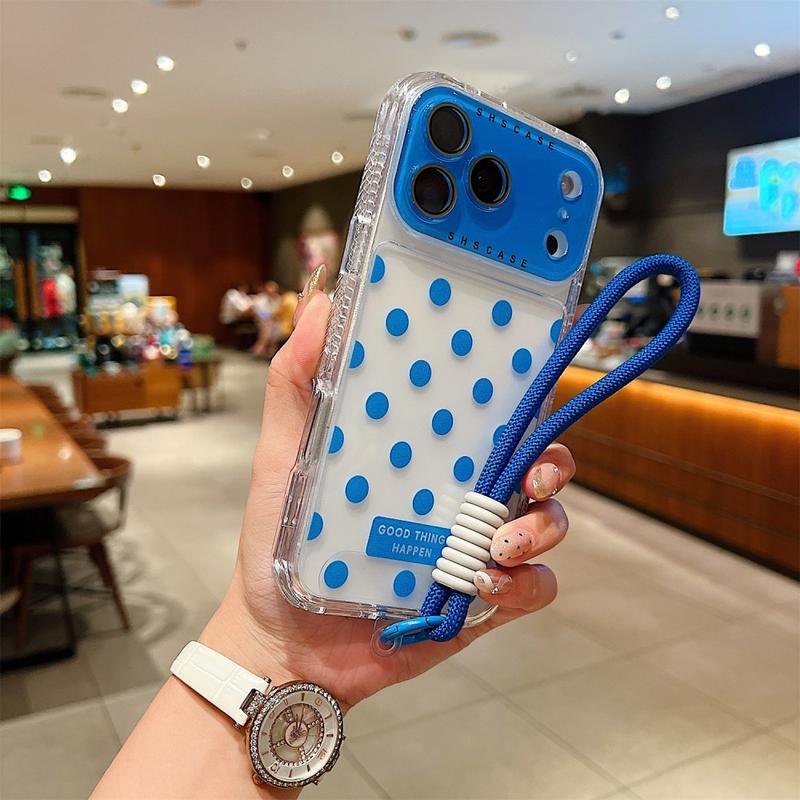 Questa custodia per iPhone 17 Pro Max a pois è più di una semplice protezione: è un accessorio di stile. La pellicola trasparente e la struttura rinforzata proteggono il dispositivo, mentre il cinturino e il design accattivante aggiungono comfort e personalità. Ideale per tutti coloro che apprezzano sia la moda che la praticità.