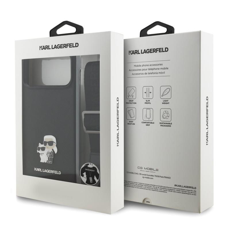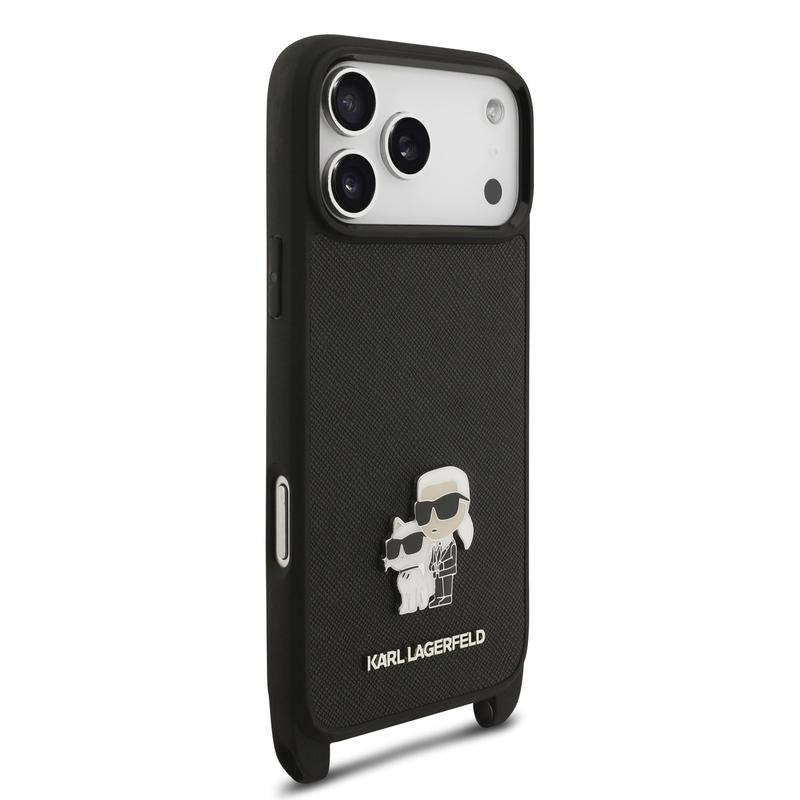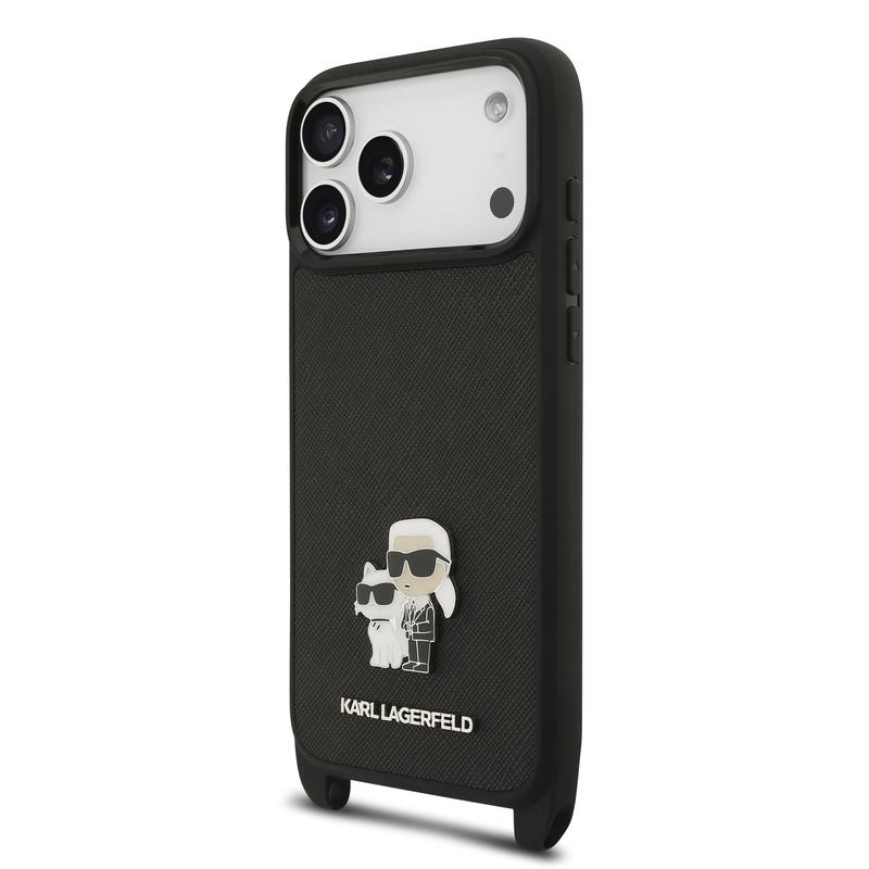 - Custodia Karl Lagerfeld Saffiano Crossbody Metal Karl & Choupette per iPhone 17 Pro