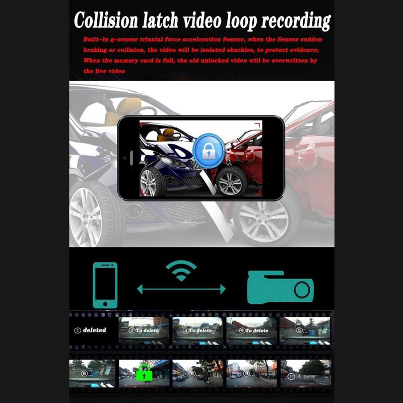 Dashcam DVR per auto G10 1080P HD - Videoregistratore WiFi, visione notturna, grandangolo 140°, monitor di parcheggio