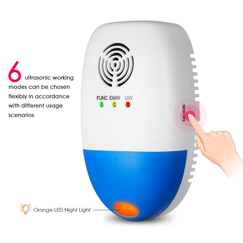 Offre una disinfestazione a più onde più forte rispetto alle unità a ultrasuoni standard, con 6 modalità operative, un'ampia copertura e un funzionamento sicuro ed ecologico.