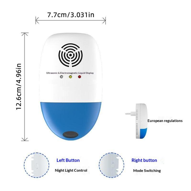 Questo repeller è atossico, privo di radiazioni e di sostanze chimiche, quindi sicuro per i bambini, gli animali domestici e gli ambienti interni. Il suo design compatto si adatta facilmente a qualsiasi stanza senza occupare spazio.