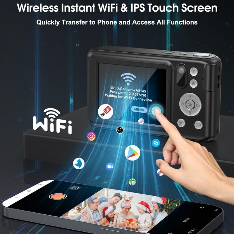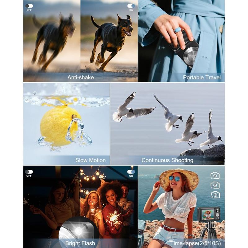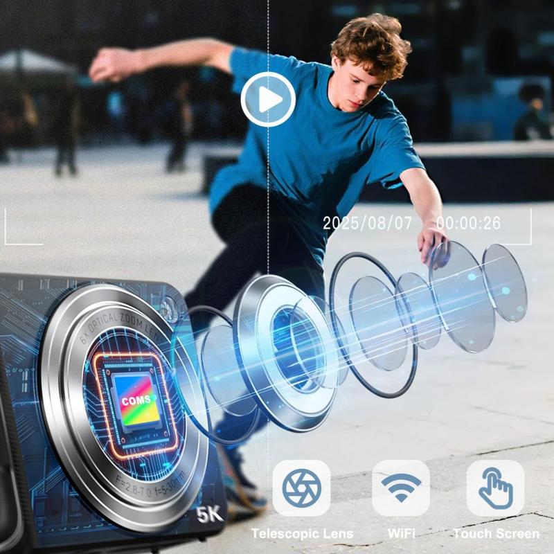 La mini fotocamera digitale DC309X combina due obiettivi ad alta risoluzione, zoom ottico 6X e stabilizzazione avanzata per offrire foto e video eccezionali in un design compatto e portatile. Dotata di un sensore frontale GC8613 800W di livello professionale e di un obiettivo posteriore Sony IMX214 da 13MP per selfie, questa fotocamera garantisce dettagli nitidi per i paesaggi e una chiarezza perfetta per gli autoritratti. Il display touch IPS HD da 2,8 pollici offre una visione chiara e un controllo intuitivo.
