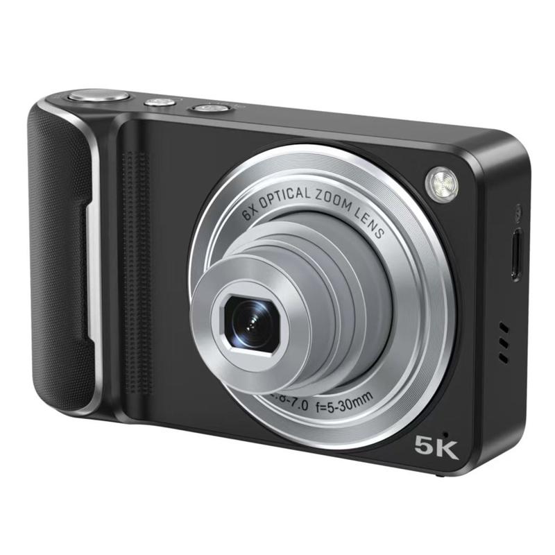 Mini fotocamera digitale DC309X - Zoom ottico 6X, doppio obiettivo, videoregistratore 5K con scheda da 32GB e 2 batterie