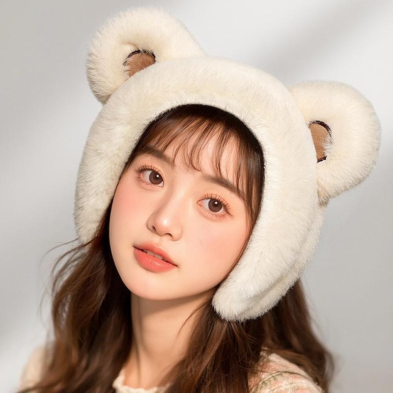 DEZ45 Fascia invernale con orecchie d'orso in peluche - Fascia per capelli antivento per le donne