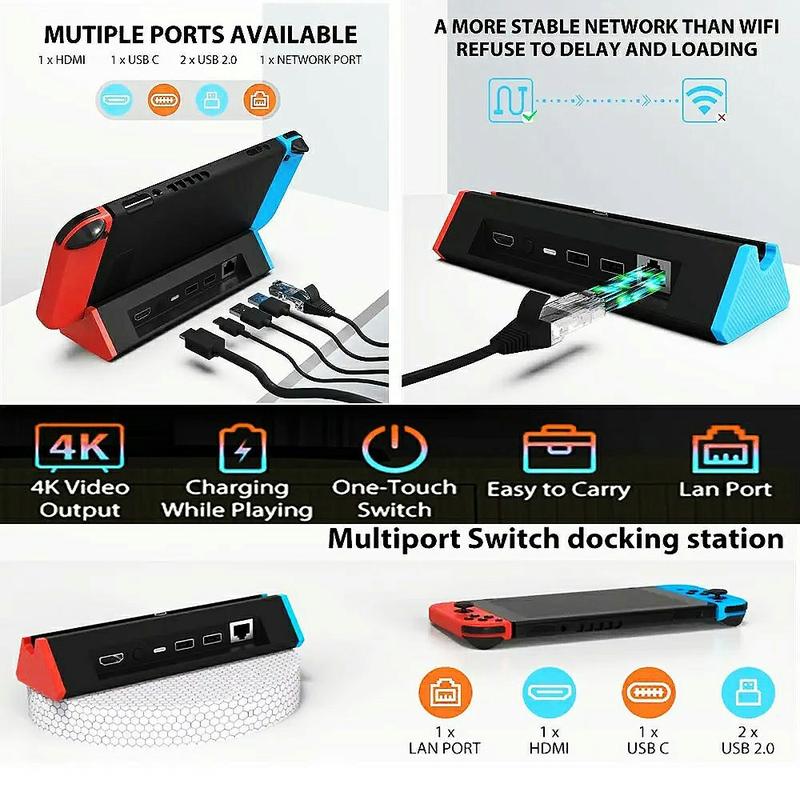 Aggiornate la vostra configurazione di gioco con la docking station per Nintendo Switch 2, progettata per offrire immagini straordinarie e una connettività versatile. Supportando un'uscita fino a 4K a 120Hz, questa docking station garantisce un gioco fluido e ad alta definizione sugli schermi compatibili. Grazie alle porte HDMI 2.1, USB 3.0, Type-C e RJ45 integrate, rappresenta una soluzione hub completa per il gioco, lo streaming e le connessioni online veloci. Il suo design compatto e portatile lo rende perfetto sia per le configurazioni domestiche che per i viaggi, offrendo il massimo mix di prestazioni e convenienza.