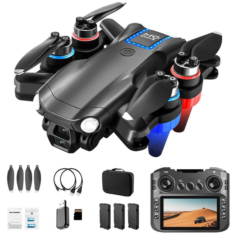 Drone FPV con motore brushless M9 - Quadcopter pieghevole con doppia telecamera HD, flusso ottico, evitamento degli ostacoli, controller a schermo e 3 batterie