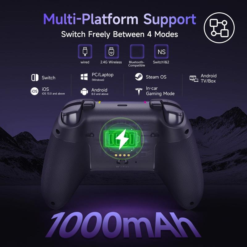- Connettività a tre modalità - Passa facilmente dalla modalità wireless a 2,4 GHz, a quella compatibile con Bluetooth e a quella cablata USB-C per una compatibilità perfetta con Switch, Windows, Android e iOS.