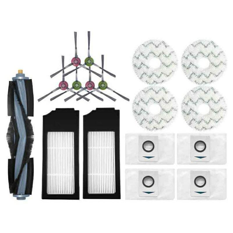 - Kit completo di 17 pezzi: Include tutte le parti di ricambio essenziali: spazzola principale, spazzole laterali, filtri, sacchetti per la polvere e panni per mop.