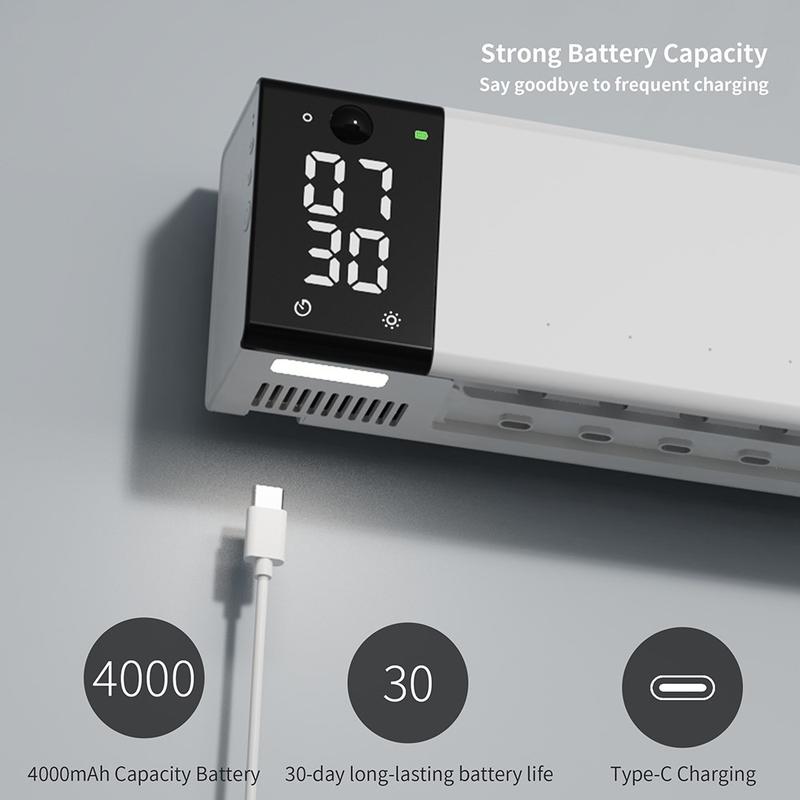 Migliorate l'igiene del vostro bagno con l'igienizzatore intelligente UV per spazzolini da denti ES909, una stazione di sterilizzazione e asciugatura multifunzionale progettata per le famiglie moderne. Dotato di un'avanzata tecnologia LED UV, elimina fino al 99,99% dei batteri, garantendo un'esperienza di spazzolamento più sana e pulita. Il sistema di asciugatura ad aria calda integrato impedisce l'accumulo di umidità, mentre l'orologio a LED integrato e il timer ad attivazione tattile garantiscono comodità e funzionalità. Grazie al sistema di montaggio a parete senza trapano, l'installazione è rapida e senza danni, per mantenere lo spazio organizzato ed elegante. Una luce notturna soffusa aggiunge comfort e stile all'arredamento del bagno.
