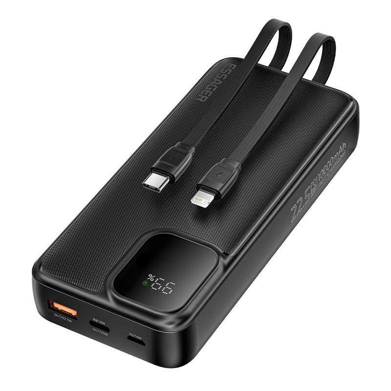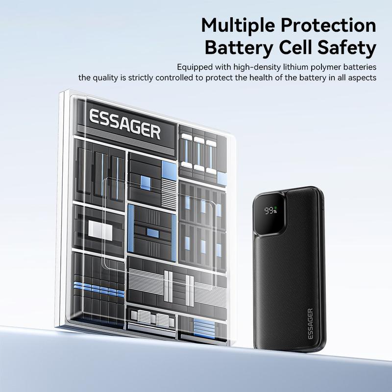 ESSAGER 20000mAh Digital Display Power Bank è progettato per uno stile di vita moderno e frenetico. Con due cavi integrati (Type-C e Lightning), un preciso display a LED e una ricarica rapida da 22,5 W, offre un'alimentazione affidabile in movimento senza bisogno di accessori aggiuntivi. Perfetto per i viaggi, il pendolarismo e l'uso quotidiano.