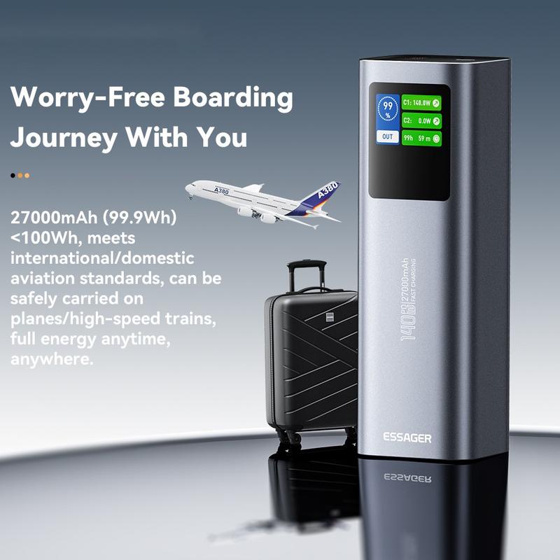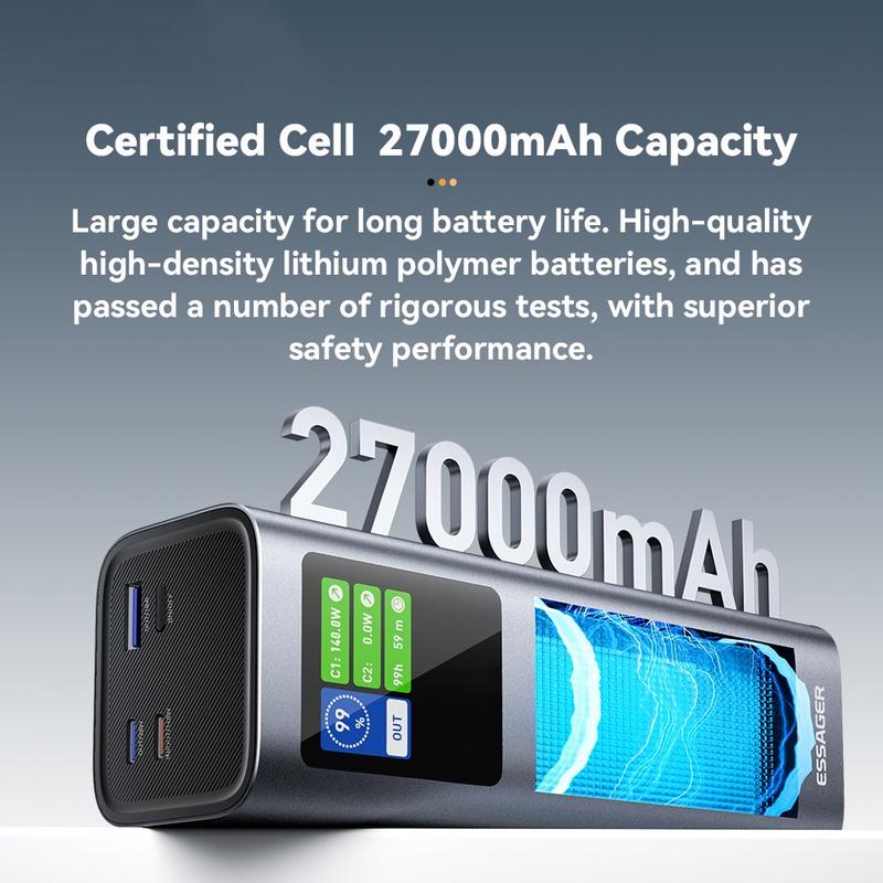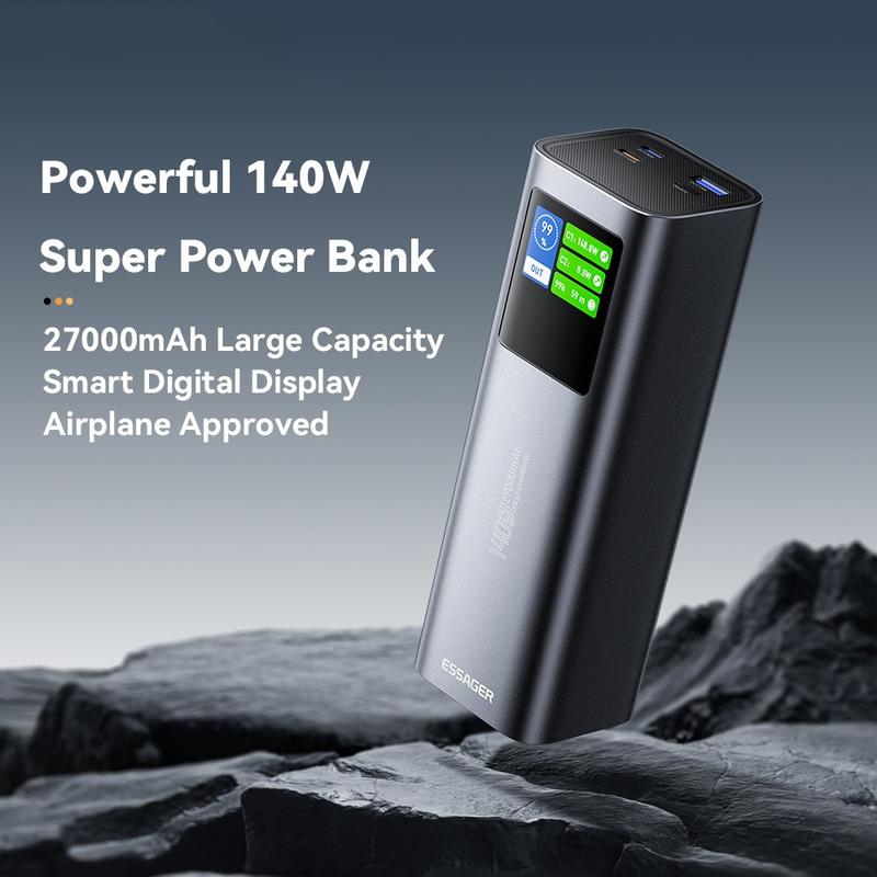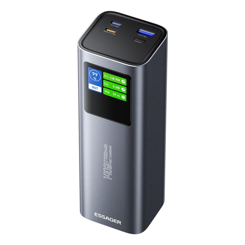 Essager EDY140W-CH0G-Z 27000mAh Power Bank - Ricarica rapida bidirezionale da 140 W, uscita a tripla porta, chip intelligente con display a colori TFT