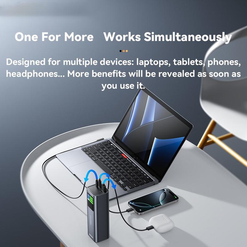 Con una capacità totale di 27.000 mAh, questo power bank offre più ricariche complete per telefoni, tablet e altri dispositivi, perfetti per i viaggi, il lavoro o le interruzioni di corrente.
