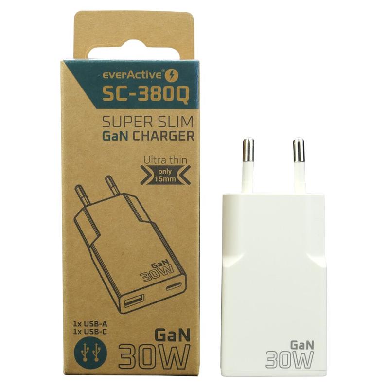 everActive SC-380Q Caricabatterie da parete GaN Super Slim 30W con porte USB QC3.0 e USB-C PD