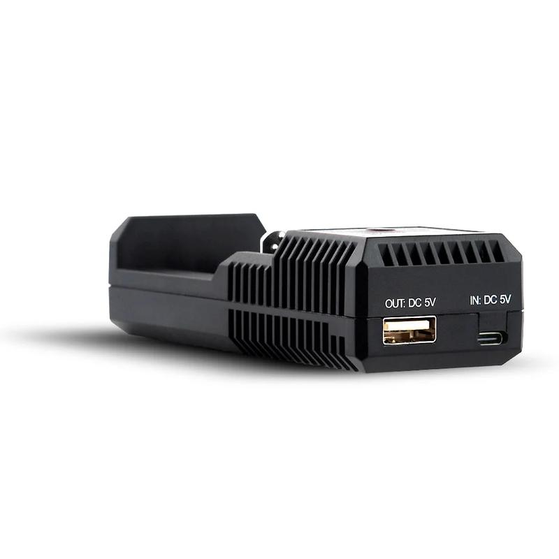 - Funzione Power Bank - con qualsiasi batteria agli ioni di litio (es. 18650, 20700, 21700) funziona come power bank USB portatile (5V/1A, max 1,5A).