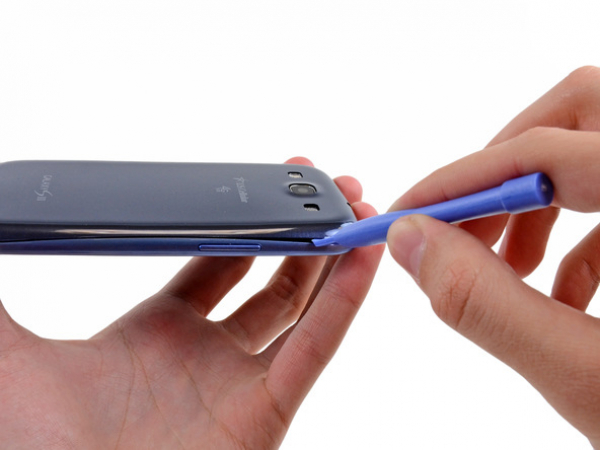 I seguenti quattro passi possono essere eseguiti senza l'utilizzo di uno strumento di apertura in plastica. Tuttavia, si raccomanda di usare un attrezzo per evitare la rottura delle clip lungo il perimetro del pannello posteriore.