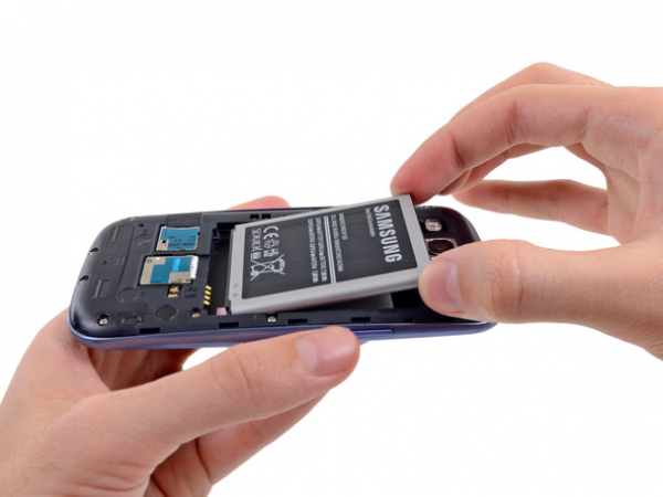 Inserisci l'attrezzo di apertura in plastica nel piccolo incavo posto sopra la batteria.