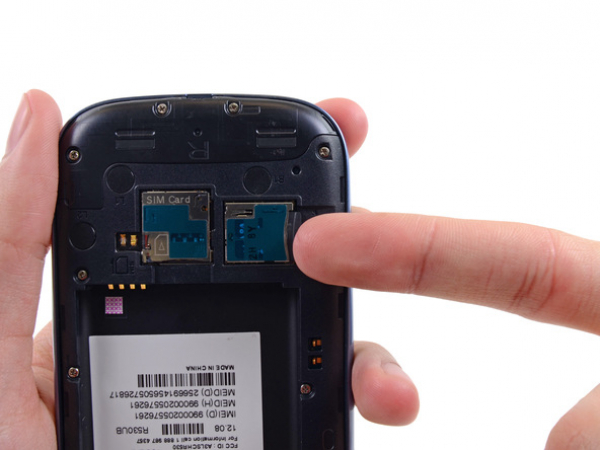 Usando la tua unghia, spingi la SIM card leggermente più in profondità nel suo slot, fino a sentire un click.