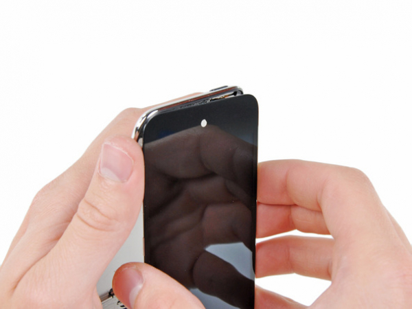 Il pannello frontale dell'iPod Touch 4G è attaccato al pannello posteriore tramite un adesivo. È altamente raccomandato l'utilizzo di una pistola a caldo per ammorbidire l'adesivo.