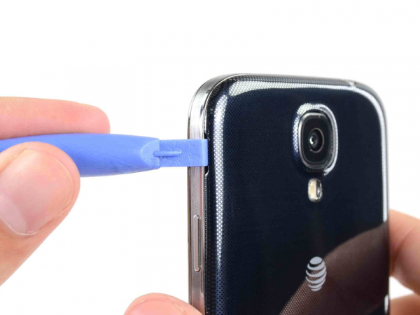 Fai leva con un attrezzo di apertura in plastica, o con l'unghia, nello spazio posto a sinistra della fotocamera posteriore, vicino al tasto accensione.