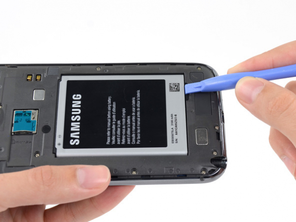 Utilizza un attrezzo di apertura in plastica per sollevare la batteria. Per farlo è necessario inserire l'attrezzo nel piccolo incavo posto sopra il vano della batteria.