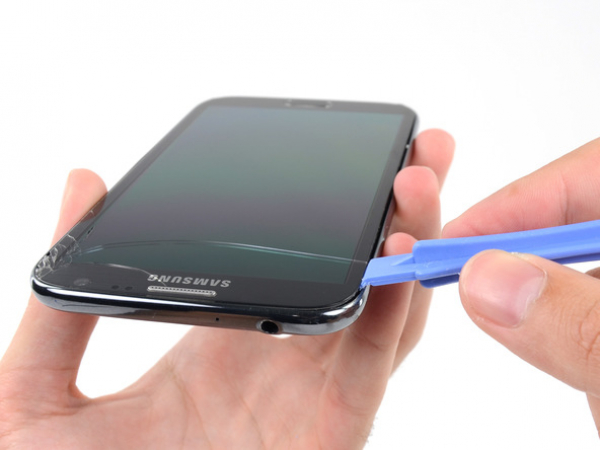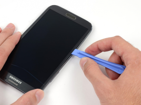 Quando arrivi all'angolo del tuo telefono, muovi delicatamente l'attrezzo di apertura in plastica intorno ad esso.