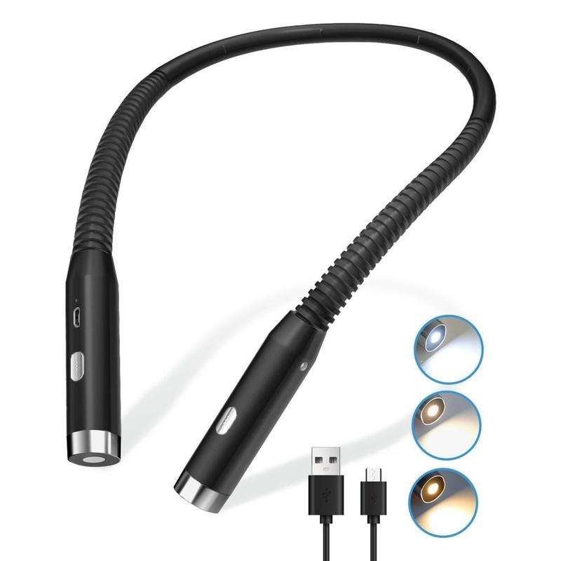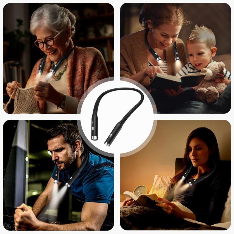 F4 LED Luce da collo per la lettura - Ricaricabile, a misura d'occhio, flessibile a 360°, a mani libere