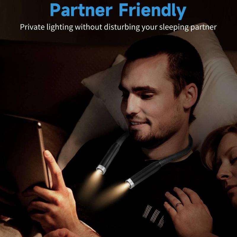 La lampada da lettura da collo F4 è progettata per garantire comfort e praticità ovunque si vada. Con un peso di soli 140 g, si appoggia con leggerezza al collo e si ripiega in modo compatto per essere riposta facilmente. Ideale per leggere a letto, in viaggio, in campeggio o per lavorare in movimento.