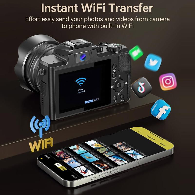 Videocamera digitale DC226 8K - Videocamera per vlogging WiFi a doppio obiettivo da 48MP con scheda da 64GB