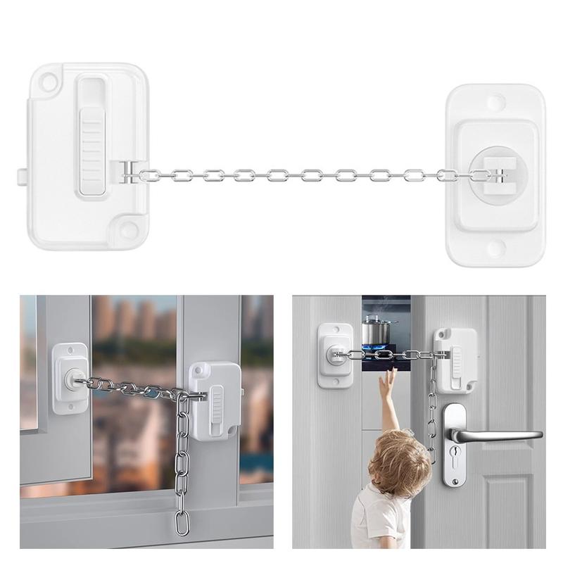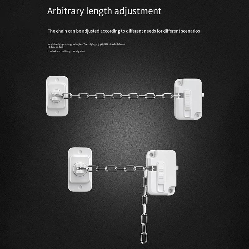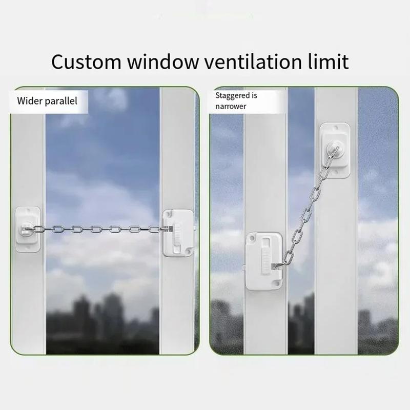 La lunghezza regolabile della catena consente di decidere fino a che punto aprire una finestra o una porta. Questa caratteristica garantisce un flusso d'aria adeguato e al tempo stesso la sicurezza di bambini e animali domestici all'interno, rendendolo un eccellente accessorio di sicurezza per case e appartamenti.