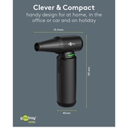 Goobay Air Duster Superior è l'alternativa definitiva alle bombole di aria compressa. Con un incredibile motore brushless da 130.000 giri al minuto e una potenza di 180 W, offre una forza di soffiaggio impareggiabile per rimuovere polvere, peli di animali domestici e detriti da tastiere, case di PC, interni di auto, banchi di lavoro e altro ancora. Ricaricabile, senza fili e dal design sostenibile, questo spolverino d'aria offre prestazioni eccellenti a casa, in ufficio o in viaggio.
