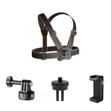 Set cinturino toracico per action camera GP-032 - Base magnetica a sgancio rapido, mini adattatore da 1/4" e clip per telefono per riprese POV