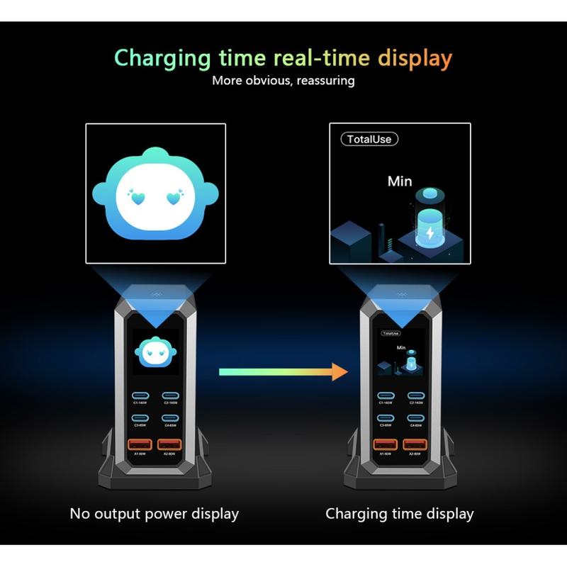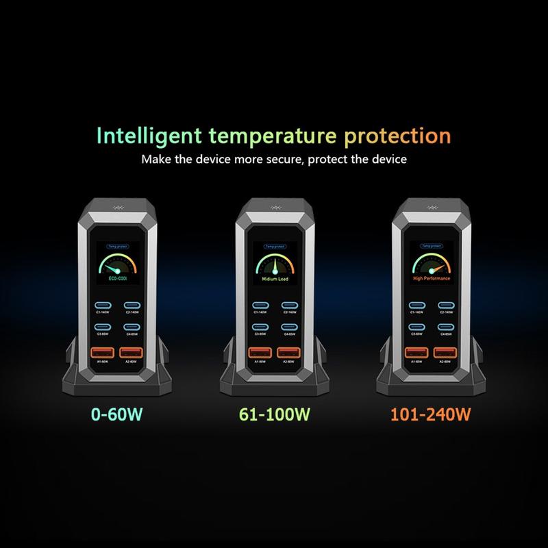 Stazione di ricarica USB-C a 6 porte HHW 240W GaN - Hub di ricarica rapida PD3.1 con display a colori in tempo reale