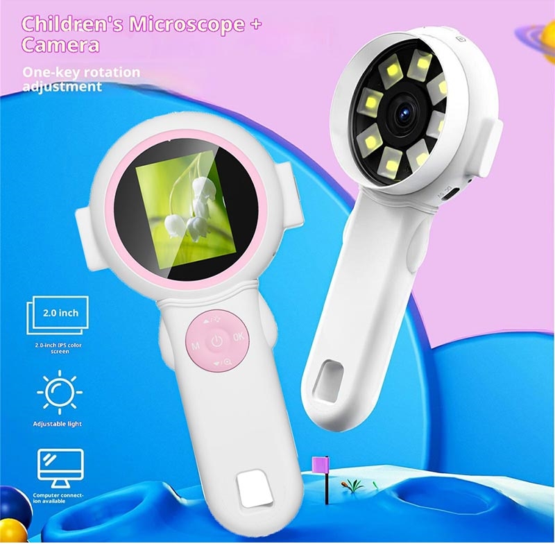 HM020J Lente d'ingrandimento digitale per bambini / Mini microscopio portatile e fotocamera con luci LED, display IPS da 2"