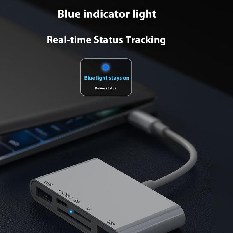 Espandete la vostra connettività con stile grazie all'adattatore 5-in-1 USB-C OTG, un accessorio essenziale che combina ricarica, trasferimento dati e lettura di schede in un unico elegante dispositivo in alluminio. Progettato per i moderni dispositivi USB-C, è perfetto per i professionisti, i fotografi e gli amanti del multitasking quotidiano che apprezzano la velocità e la convenienza.