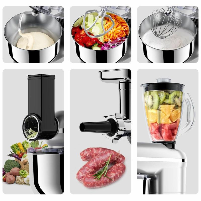 Semplificate la vostra routine in cucina con l'impastatrice multifunzione da 5.5L, un apparecchio all-in-one progettato per gestire con facilità ogni attività di cottura e panificazione. Combinando la potenza di un'impastatrice, di un mixer, di un frullatore, di un tritacarne e di uno spremiagrumi, offre risultati professionali e praticità quotidiana in un'unica unità compatta.