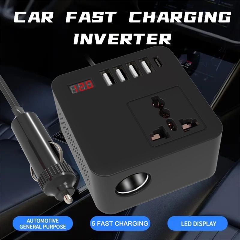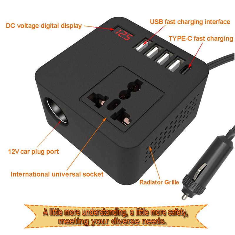 Inverter da auto con display digitale - Convertitore da 12V/24V DC a 110V/220V AC con USB-C, USB-A e presa AC 150W