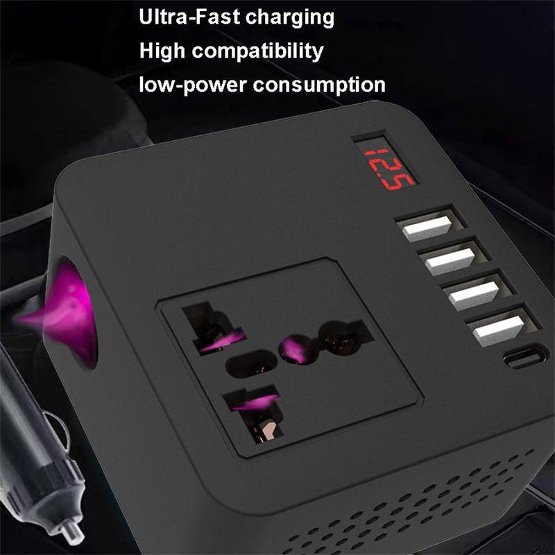 L'inverter da auto con display digitale offre ricarica rapida per più dispositivi, raffreddamento intelligente e sicurezza in un formato compatto. Che si tratti di pendolarismo o di campeggio off-grid, è la stazione di alimentazione portatile tutto in uno.